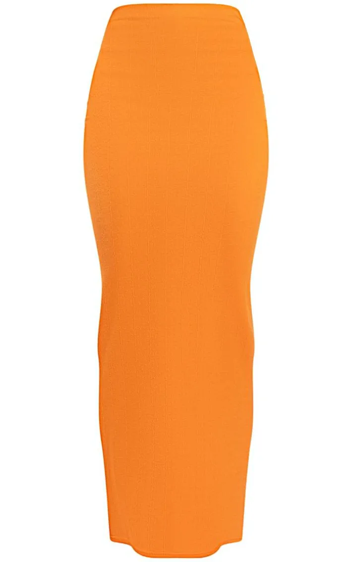 Brighten up your new season aesthetic with this bright orange textured jersey low rise midaxi skirt. Brought to you in a bright orange hue textured jersey material with a low rise design and a figure-worshipping midaxi fit, what’s not to love? Style this midaxi dress with the matching crop top, flatform sandals and gold accessories for a look that is sure to make you stand out from the crowd this weekend.