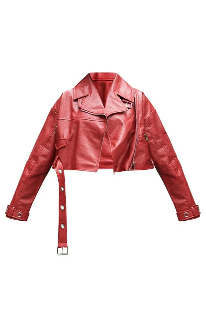 Get ready to nail major trends this season with this bright red patent faux leather belt detail cropped Biker jacket, you’re sure to be earning all the compliments. This jacket features a bright red patent faux leather material with a belt detail and a cropped length, it’s a definite yes from us whatever your plans. Team this Biker jacket with wide leg jeans, sneakers and a shoulder bag for an instant chic finish.