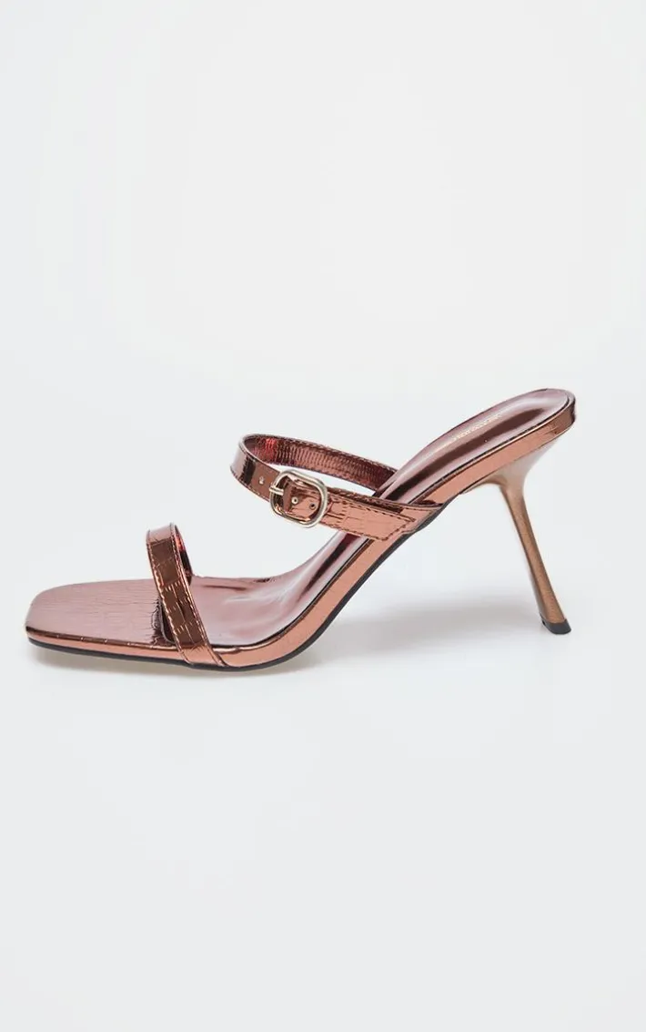 Bring all the glam vibes to your weekend look with these bronze croc PU square toe strappy heeled mule sandals. Made from a bronze croc PU material with a square toe design and strappy detailing, what more could you want? Simply add these heeled mules to any outfit for the perfect finishing touch.