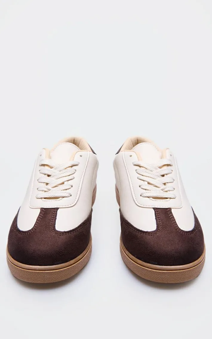 Step into the new season in style with these brown and cream PU contrast panel lace up sneakers. Brought to you in a cream PU material with a brown contrasting panel and a lace up fastening, what’s not to love? Simply add these PU sneakers to your outfit of the day for a look you will be reaching for again and again.
