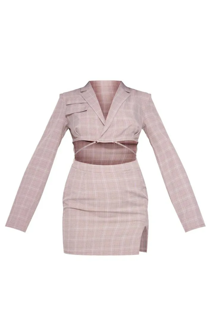 Get ready for the weekend in style with this brown check woven cut out tie waist utility style blazer bodycon dress, you’re sure to be earning all the compliments. This dress features a brown check woven material with a cut out design and a blazer style, you won’t be able to resist. Pair this utility dress with knee high heeled boots and your fave accessories for a look everyone will want.