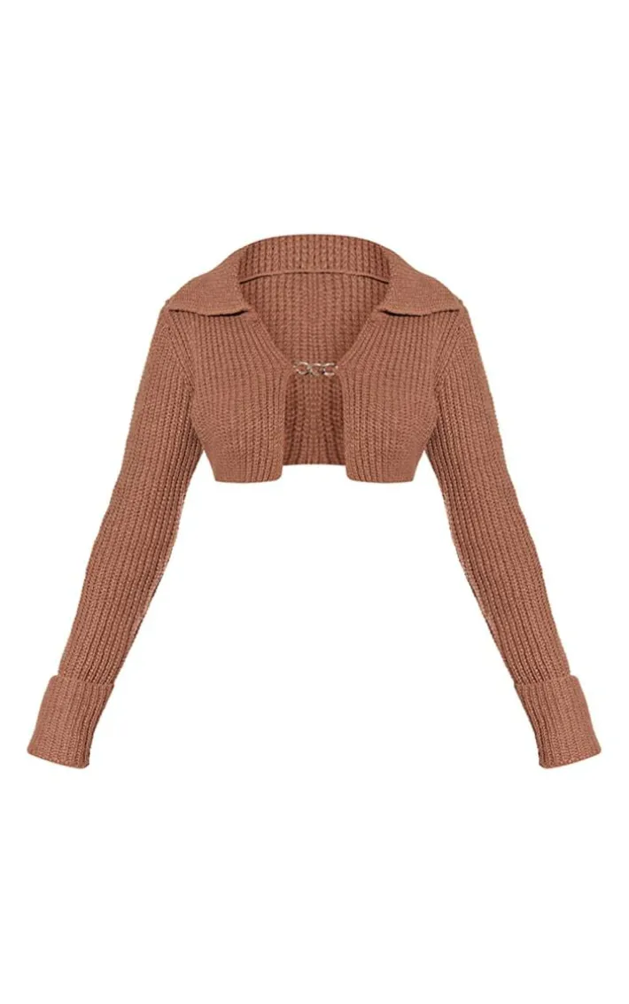 Channel the hue of the season into your wardrobe with this brown chunky knit chain cropped cardigan. Brought to you in a brown hue chunky knit material with a cropped fit and chain detailing for that extra touch of luxe, you really can’t go wrong. We are loving this cropped cardigan paired with the matching mini skirt and knee length heeled boots for a look that is sure to earn you some serious style points no matter what your plans.
