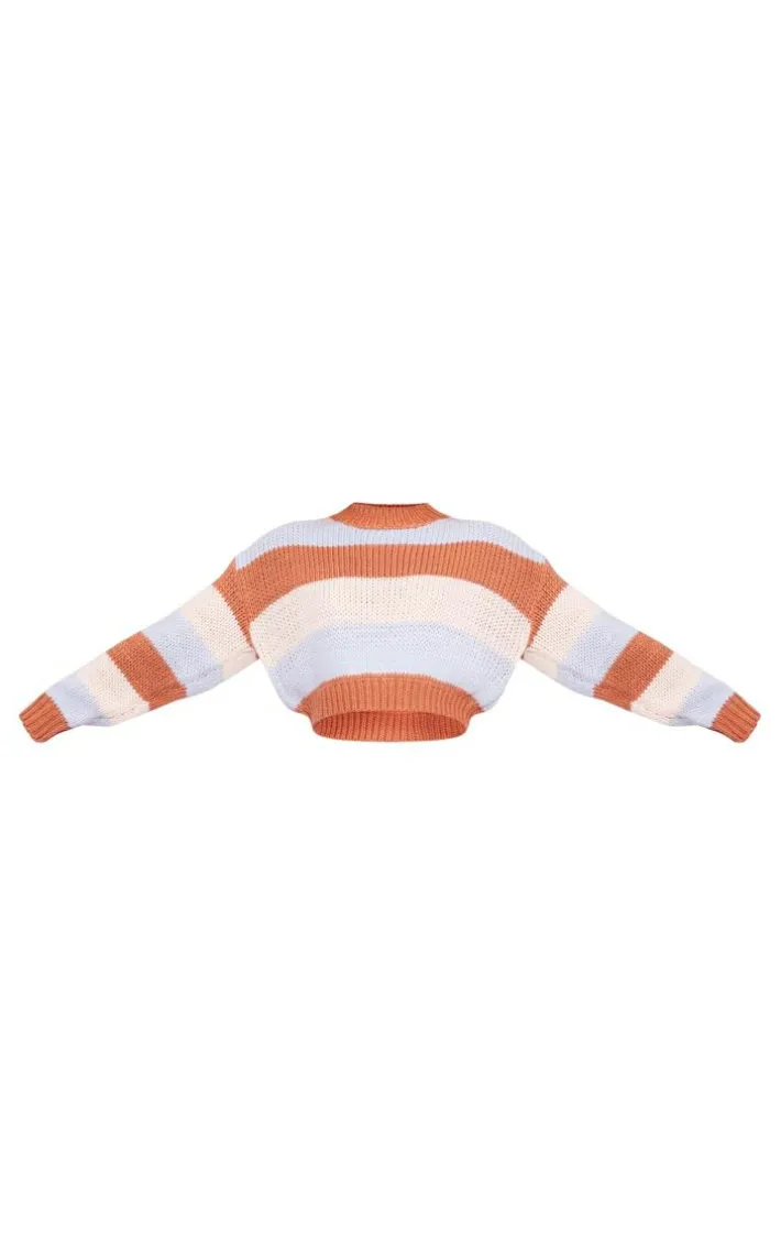 Get maxing out your knitwear collection with this brown chunky striped knit cropped sweater. Its brown chunky knit material features a striped design and cropped length which is sure to gain you all the compliments this season. Whatever your plans are, this sweater is that must-have essential you have been searching for. Team with a mini skirt, gold accessories and knee-high boots to set trends wherever you step foot.
