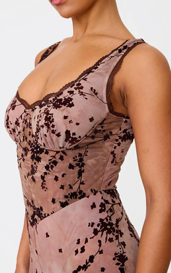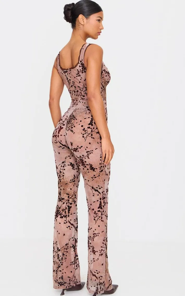 Highlight your best features with this brown devore boning detail strappy flared jumpsuit. We’re obsessed with its boning detail corseted top, brown devore fabric and flared leg design. You need this flared jumpsuit in your collection for your next weekend event. Style this look with high heels and your best accessories to own the moment.