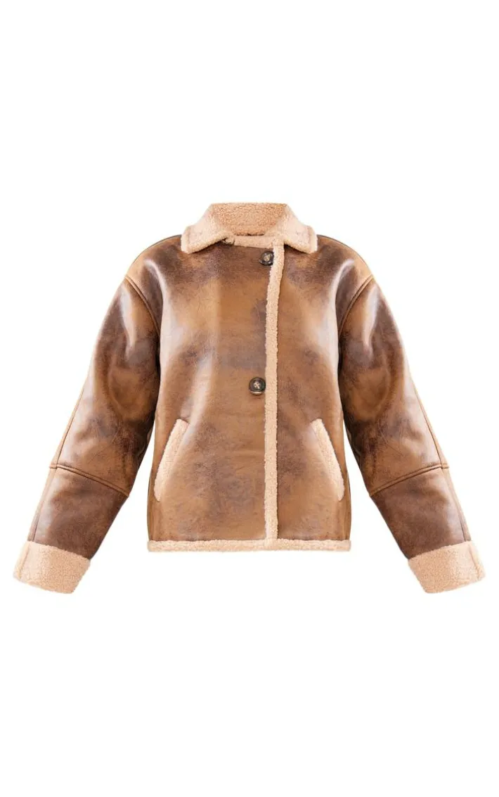 Layer up in style with this brown distressed look faux leather borg lined aviator jacket. Brought to you in a brown hue faux leather material with a distressed look and a borg lined design for those extra cosy feels, what more could you want? You will be reaching for this brown aviator jacket again and again. Just add to your outfit of the day for a flawless finishing touch to any look.