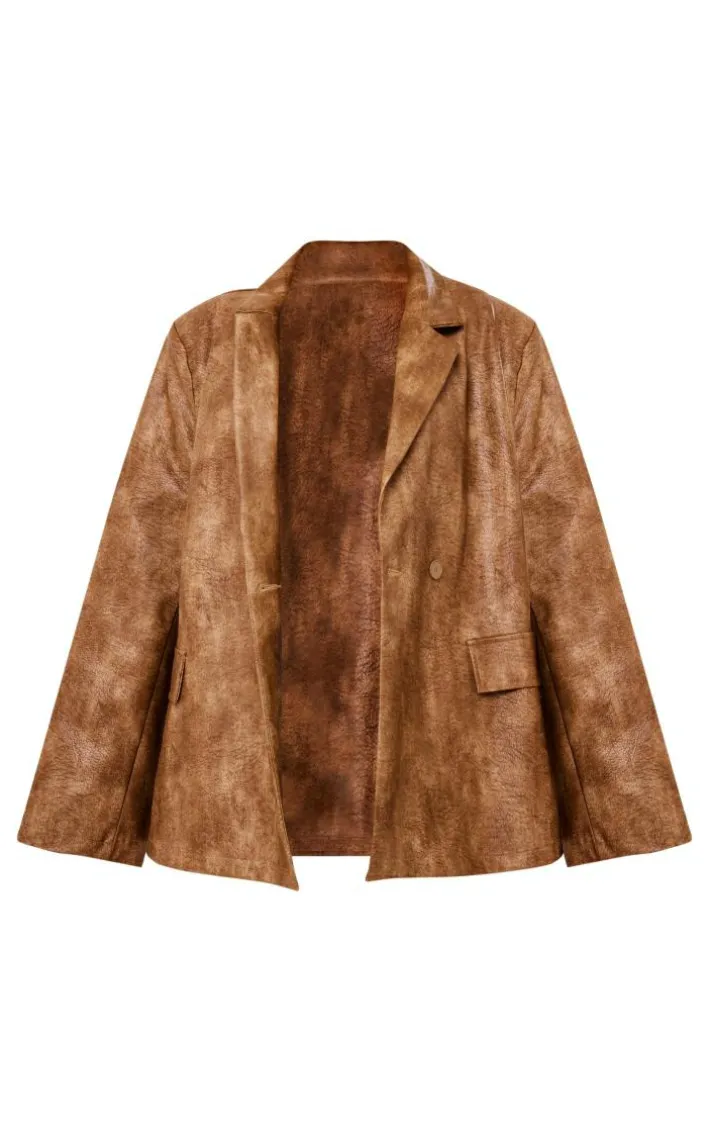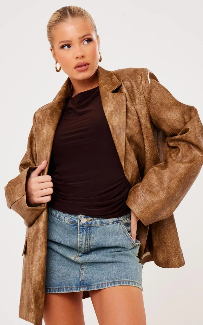 When the weekend calls for a little drama this brown distressed PU oversized shoulder pad blazer will tick all the boxes. It is made using a brown distressed PU material with shoulder pads and a relaxed fit, how could you resist? Style this PU blazer with your fave new season fit for a look that will get everyone talking.