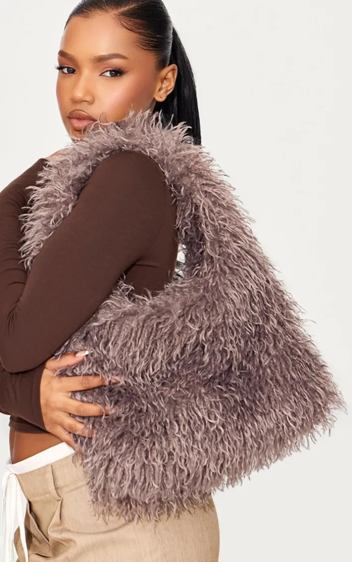 This brown faux fur large tote bag is perfect for new season styling. Brought to you in a brown faux fur material with a large tote design, what more could you ask for? You will be reaching for this faux fur bag again and again. Style with your outfit of the day to complete any look.