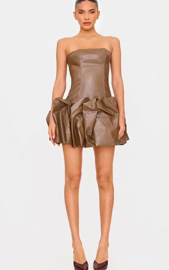 This brown faux leather bandeau puffball mini dress will earn you some serious style points this season. Brought to you in a must-have brown shade, with a luxe faux leather material, bandeau neckline and puffball design, what more could you want? Pair with some chic clip on heels and simple accessories for a look we’re all after.