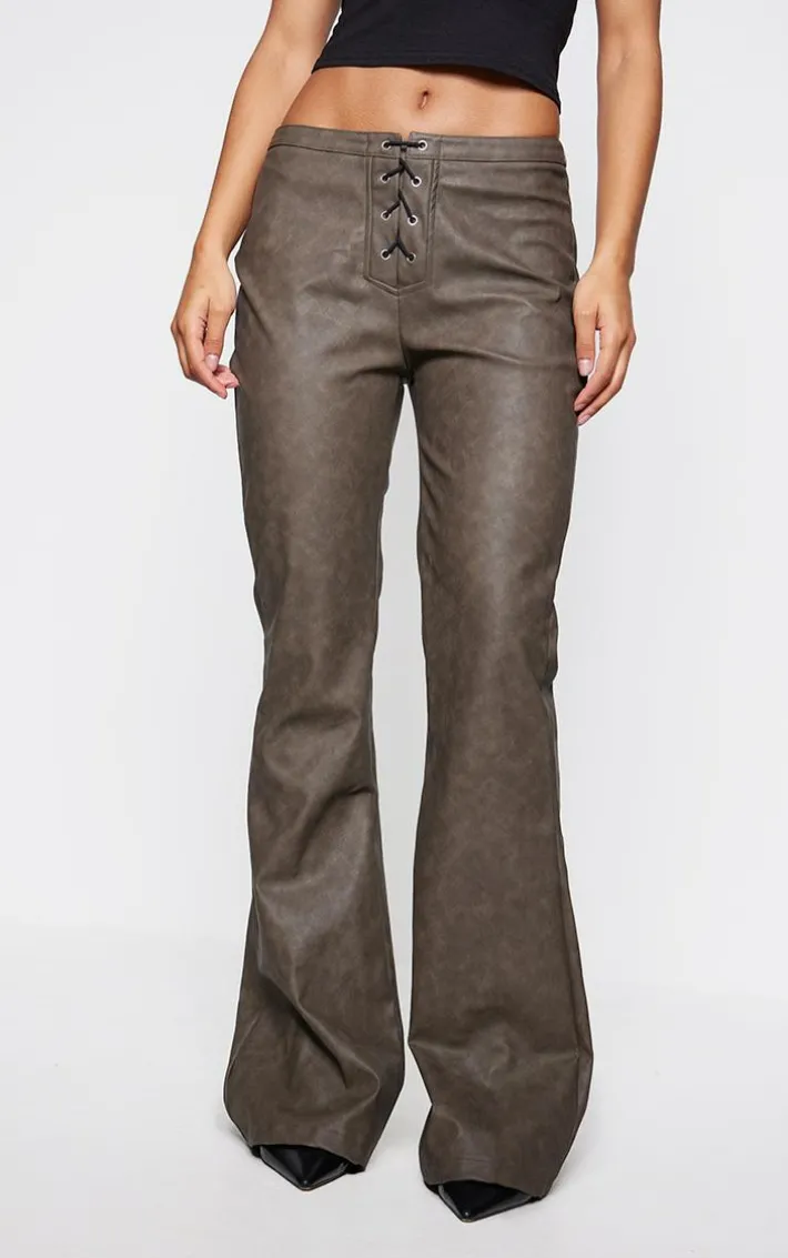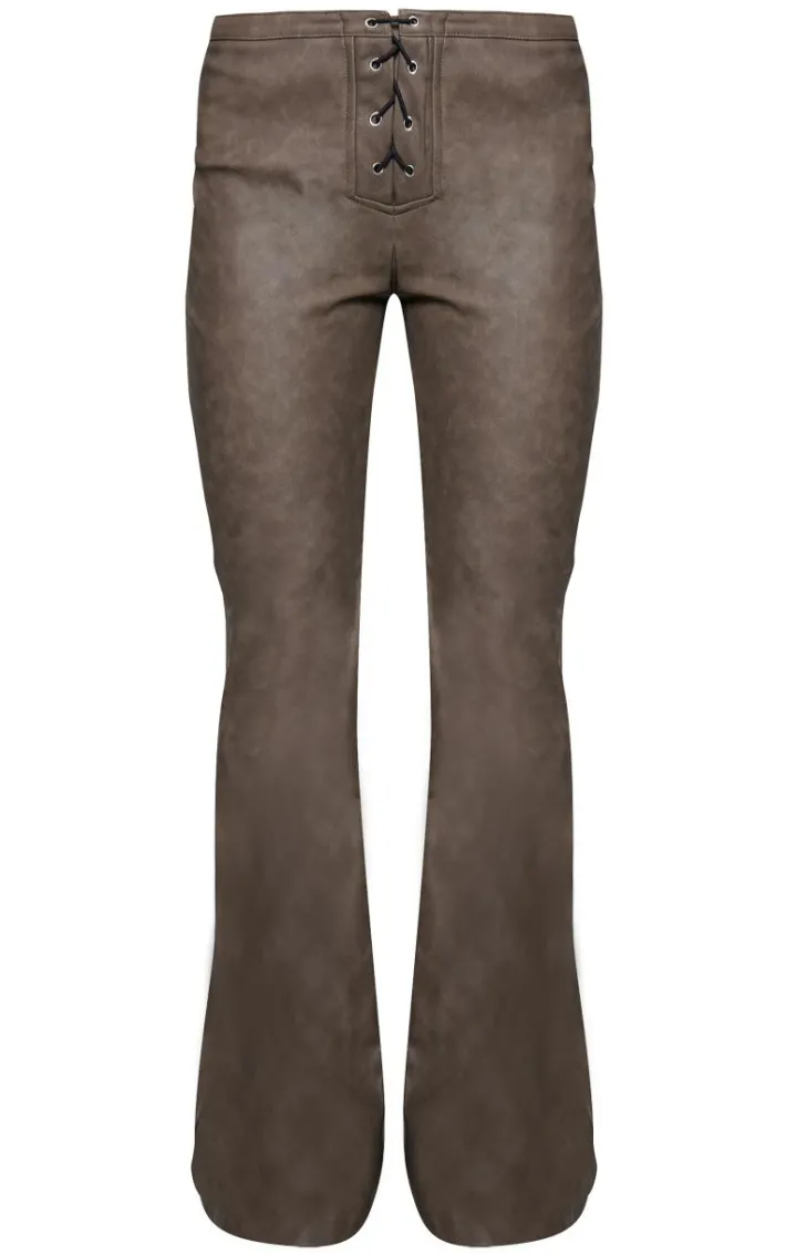 Keep it seriously chic with these brown faux leather lace up detail low rise straight leg pants. Brought to you in a brown faux leather material with a lace up design and a straight leg fit, what’s not to love? These dreamy pants are sure to have you standing out from the rest. Team with your fave accessories and a pair of heels for a look everyone will be wanting.