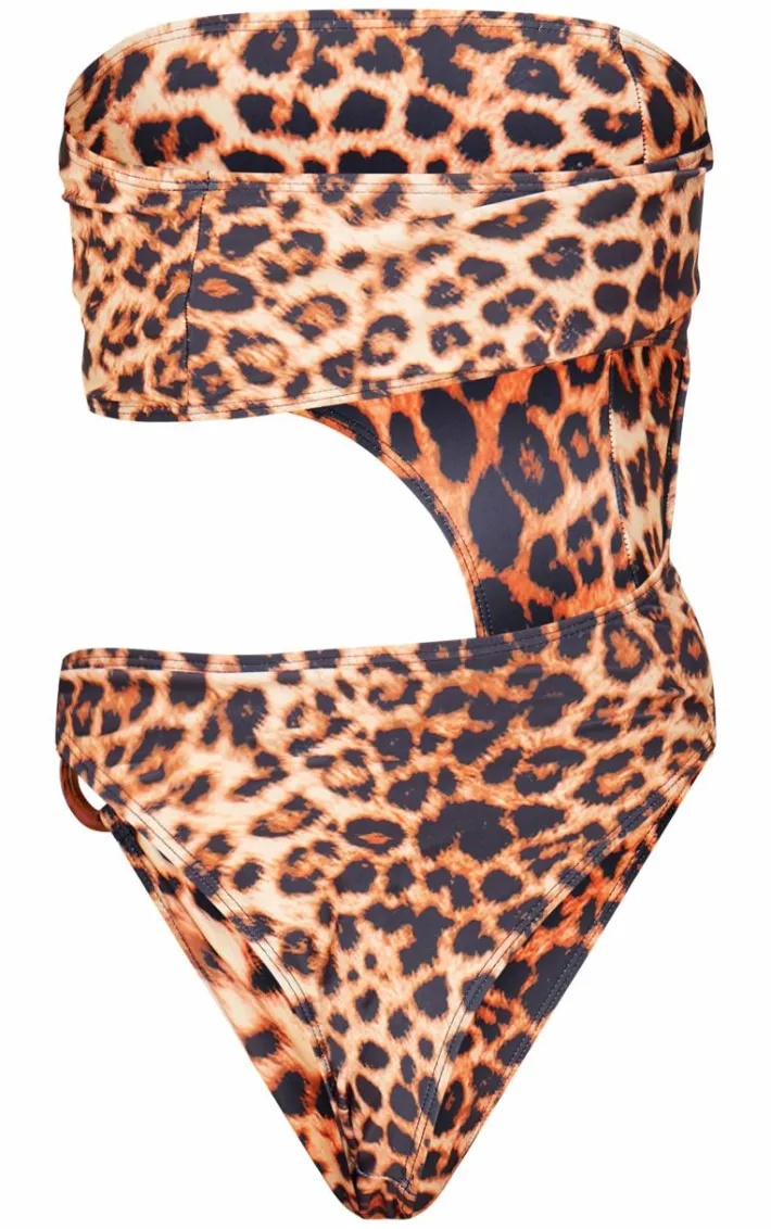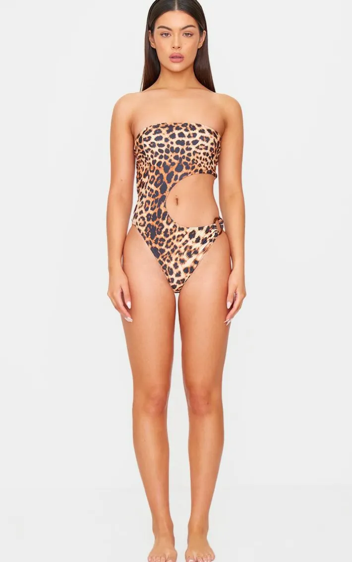 Add some on-trend prints into your swimwear collection with this brown leopard print cut out O ring trim detail swimsuit. Brought to you in a brown hue material with a leopard print design, cut out detailing and a flattering fit, how can you resist? Style this printed swimsuit with some gold accessories to complete the look we’re loving.