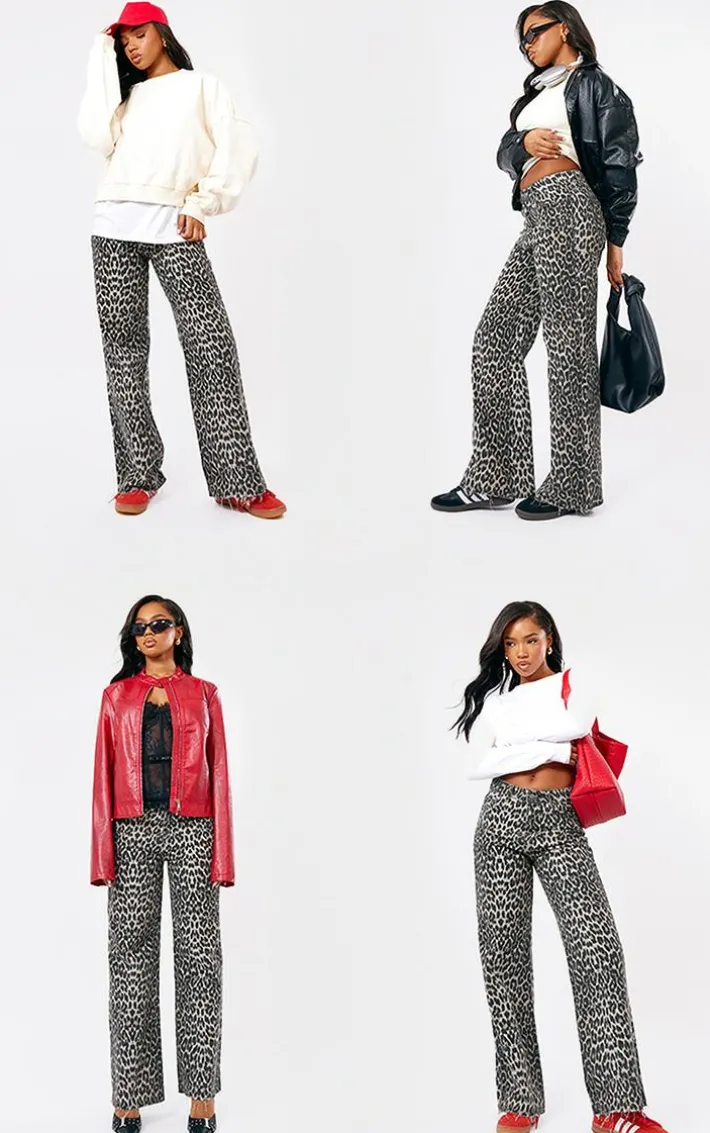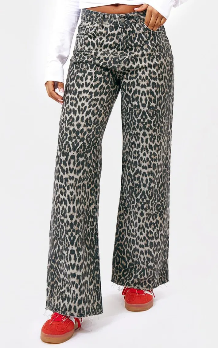 Take your weekend wardrobe to a whole new level with these brown leopard print denim wide leg denim jeans. These denim jeans are brought to you in a brown leopard print denim material with a high waist and a wide leg fit, what’s not to love? These jeans are calling your name. Complete the look and style this with the matching top, high heels and accessories for a look like no other.