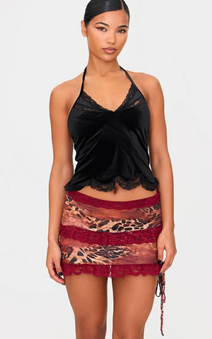Look all kinds of chic in this brown leopard print lace mini skirt. Brought to you in a brown hue material with a leopard print design and lace detail, this mini skirt is all the new you need. Style with a black top, slip on heels and simple accessories for a look like no other.