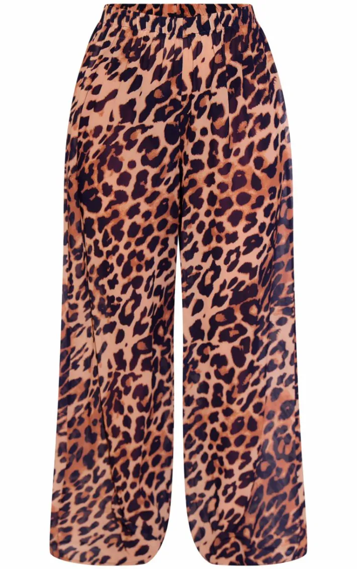 Channel new season trends with these brown leopard print wide leg beach pants. Brought to you in a brown hue material with a leopard print design and a wide leg fit, we are obsessed. Pair these beach pants with the matching shirt, a bikini and statement accessories for a look that is perfect for your next vacay.