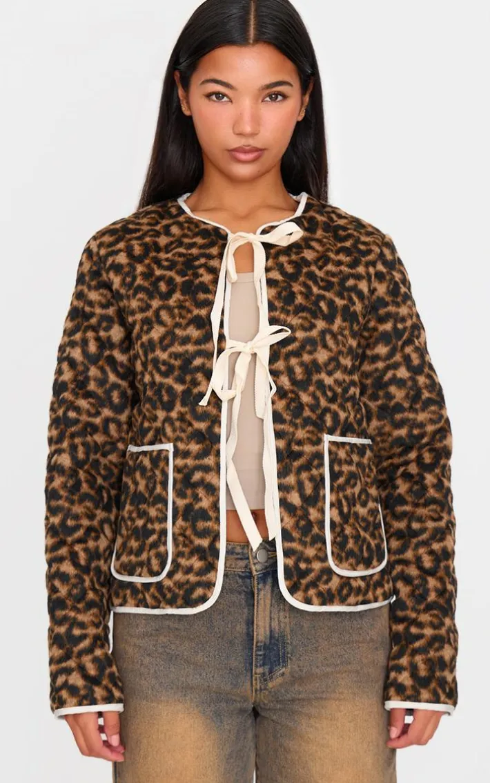 Your outfit of the day is calling out for this brown leopard quilted contrast binding jacket. Brought to you in a brown quilted material with a leopard print design and a contrast binding detail, what’s not to love? Team with your fave accessories for a look that will have heads turning no matter what the occasion.