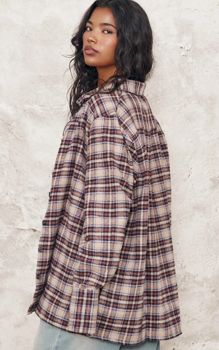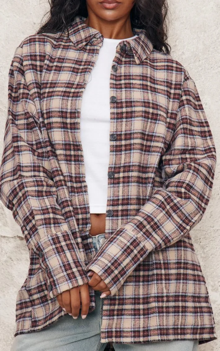 Layer up your look in style with this brown oversized flannel shirt. Made from a brown flannel material with a check print design and an oversized fit, what more could you want? Team this flannel shirt with your fave off-duty pieces for a statement finishing touch to any look.