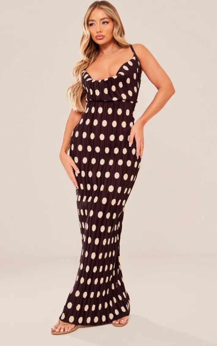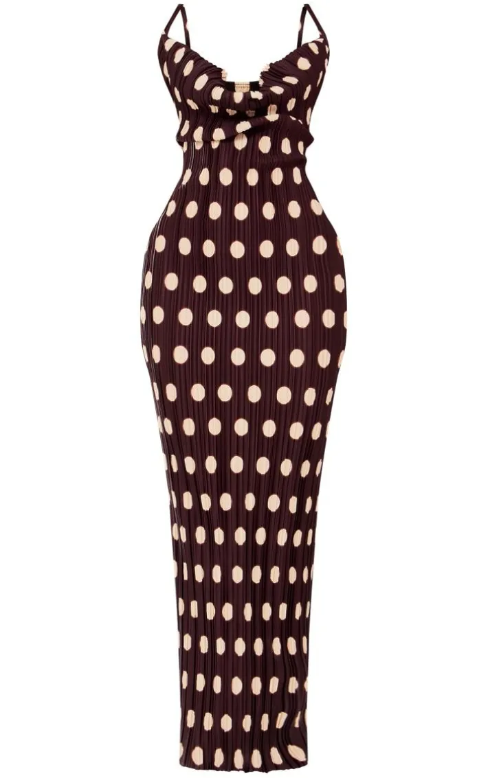 Add some of this seasons must-have prints into your look with this brown polka dot printed plisse strappy maxi dress. This maxi dress is brought to you in a brown polka dot plisse material with a strappy design and a maxi length, what’s not to love? This maxi dress is the perfect piece for your next date night. Just add your dreamy high heels and accessories for a look that will turn heads.