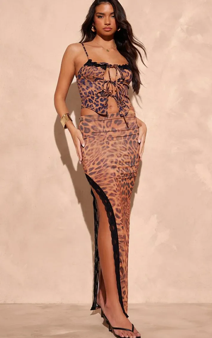 This brown printed slinky lace trim maxi skirt is here to banish any of your what to wear dilemmas. Brought to you in a brown slinky print material with a lace trim and a maxi length, we can’tget enough. From start to finish this maxi skirt will have you looking totally on-trend. For a next-level look simply style with the matching top, high heels and accessories for a look that will have you setting trends wherever you step foot.
