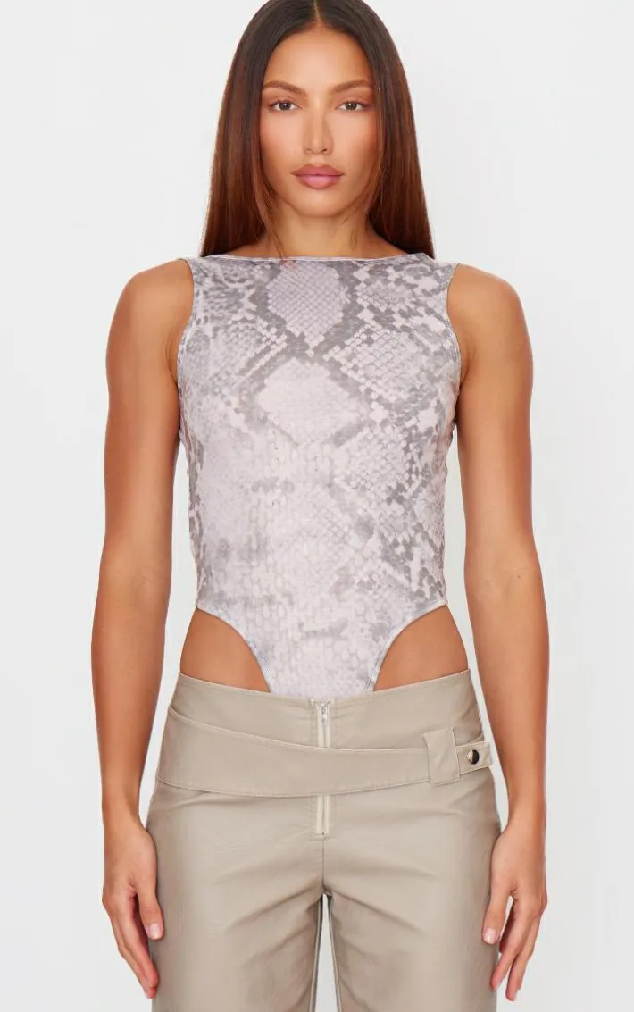 Work your styling techniques with this brown snake print soft jersey open back bodysuit. Brought to you in a brown soft jersey material with a snake print design and an open back detail, you are sure to turn heads for all the right reasons. Team this bodysuit with some wide leg pants, court heels and your go-to gold accessories to add a touch of luxe to any look.