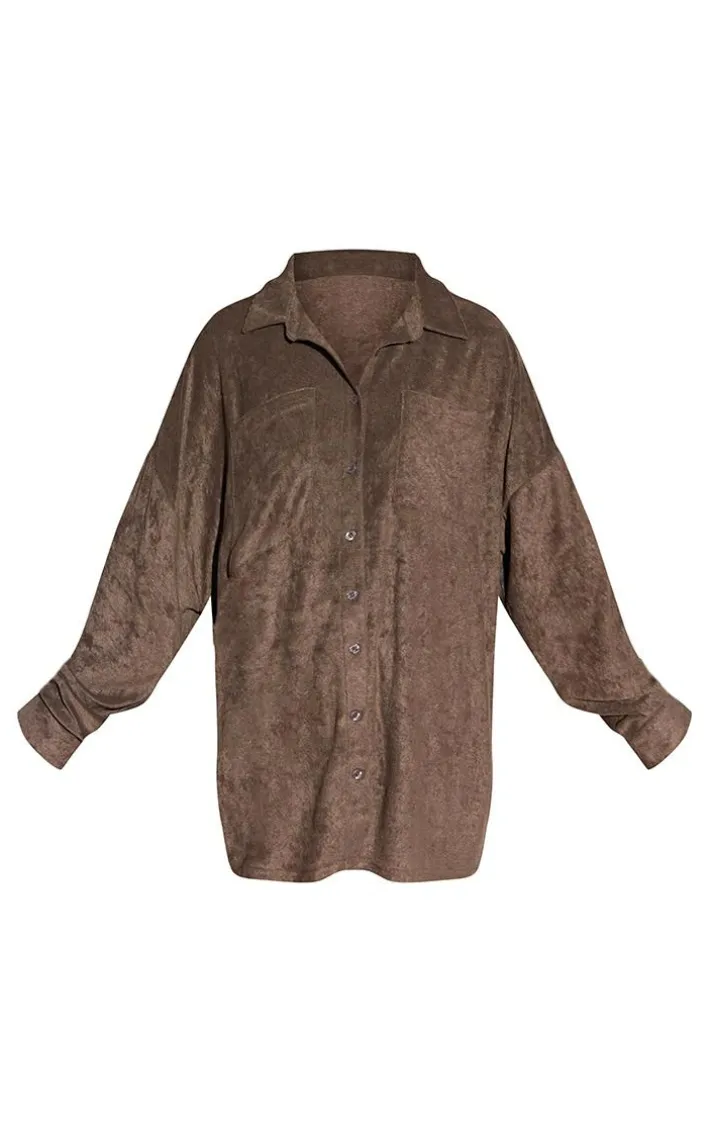 Layer up your beach look with this shirt. Featuring a brown towelling material with an oversized fit, pair this with your fave bikini and sandals for a vacay-worthy combo.