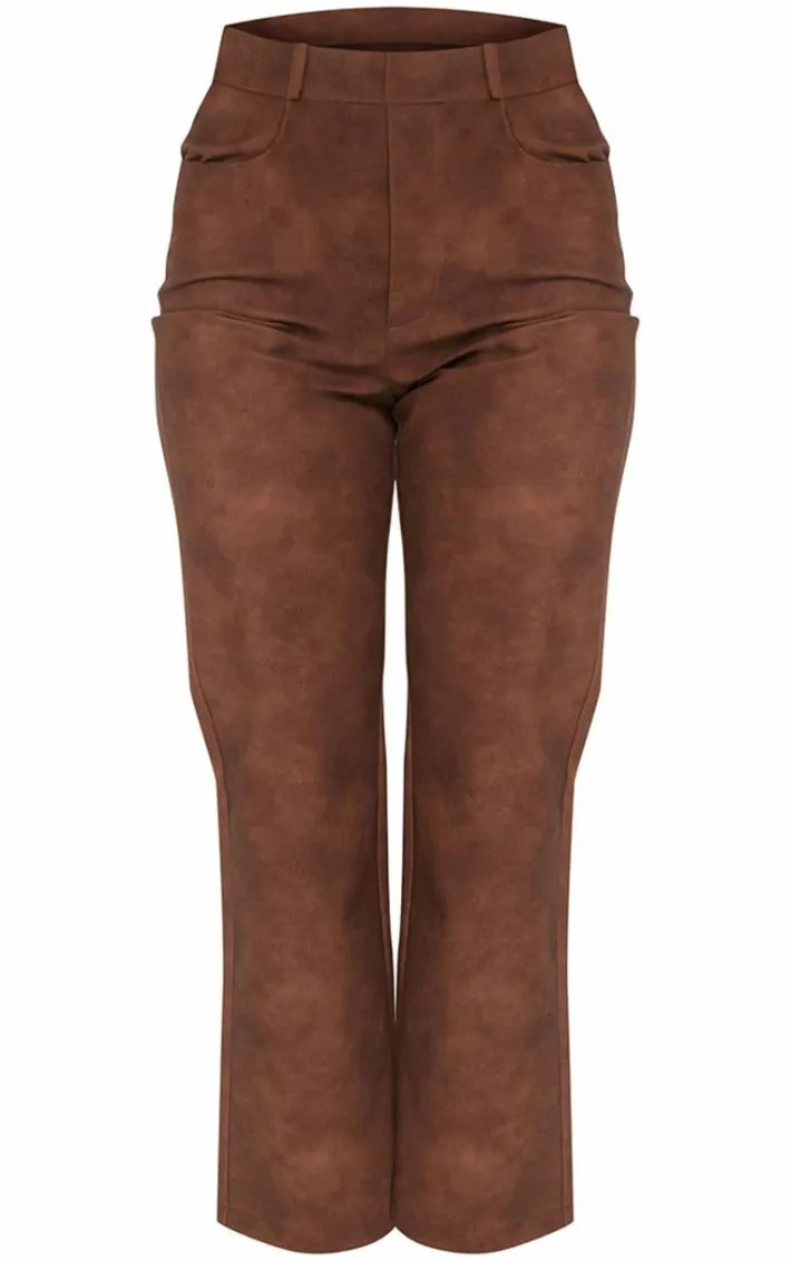 Bring all the attitude to your new season wardrobe with these brown washed faux leather cropped straight leg pants, you won’t be able to say no. With a brown washed faux leather material, a cropped length and a straight leg fit, these pants will be at the top of your hit list. Team these straight leg pants with the matching top, your highest heels and a shoulder bag for a look we just can’t get enough of.