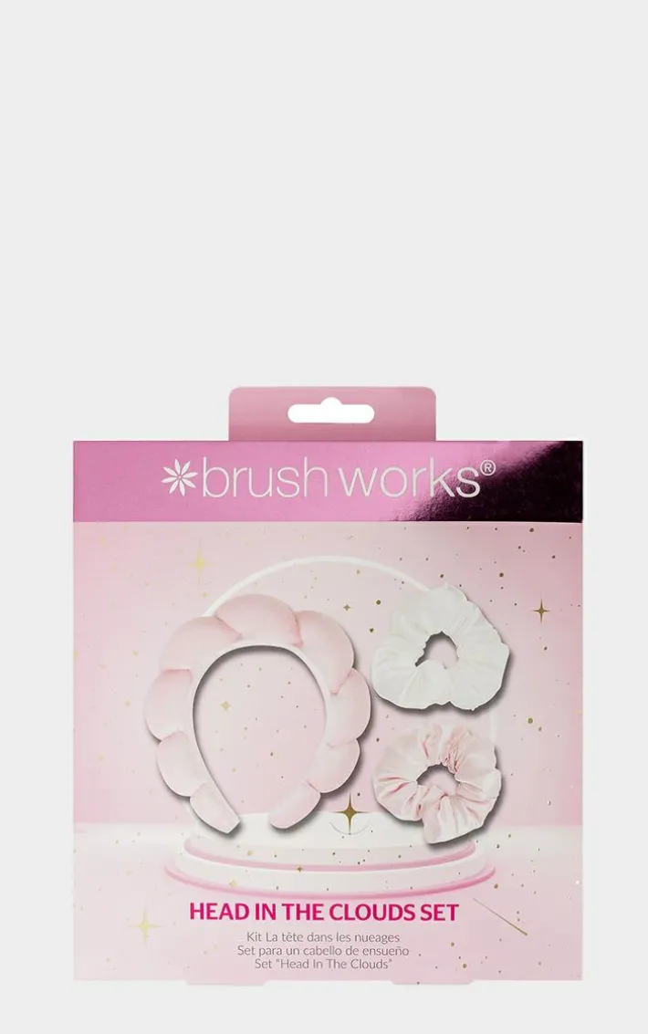 Introducing the Brushworks Head In the Clouds Set, a delightful combination designed to elevateyour beauty routines with ease and style. This set features a cloud headband and two large cloud scrunchies, providing both comfort and functionality to keep your hair effortlessly in place while you pamper yourself. Say goodbye to hair tugging and breakage during your beauty rituals, as the soft and plush cloud headband gently holds your hair back without causing discomfort. The cloud scrunchies are perfect to use day or night, ensuring a secure holdwithout pulling or damaging your hair. Whether you’re applying skincare, doing your makeup, or simply relaxing, the Head In the Clouds Set is the perfectcompanion to keep you feeling comfortable and stylish throughout your beauty routines.