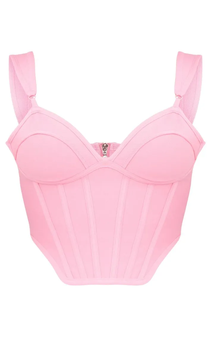 Get ready to have all eyes on you with this bubblegumpink bandeau dip hem bust cop corset. Brought to you in a bubblegum pink bandage, what’s not to love? With it’s statement pink hue you’ll sure to earn all the likes with this dreamy piece. Finish off the look by pairing this with your denim jeans, high heels and accessories for a look like no other.