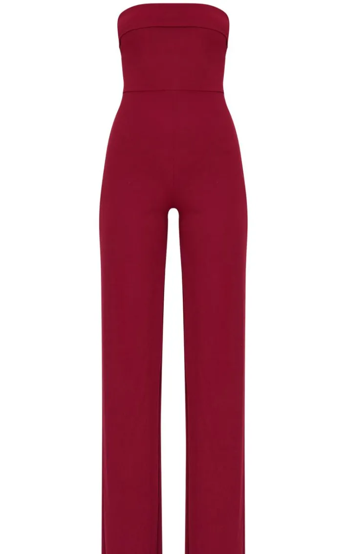 Introducing classy silhouettes with this burgundy crepe fold over detail wide leg jumpsuit. Made from a burgundy hue crepe material with a fold over detail and wide leg design, this jumpsuit is a must have for all those special occasions. Style with point toe heels and simple accessories for a look that won’t go unnoticed.