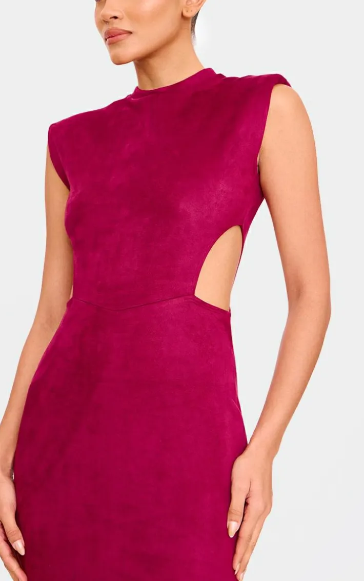 Turn heads this events season in this burgundy faux suede cut out maxi dress. Brought to you in a burgundy hue faux suede material and cut out design, this maxi dress is all the new you need. How can you resist? Style with slip on heels and simple accessories to stand out from the crowd. It’s a yes from us.