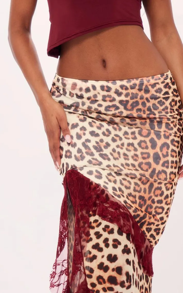 Take on your weekend the right way with this statement cherry red leopard print lined mesh thigh split lace trim maxi skirt. Made from a cherry red lined mesh material with a leopard print design, this is everything we’re loving and more. With It’s figure-hugging fit and lace trim, this maxi skirt is sure to hug you in all the right places. To complete the look style this seamlessly with a crop top, a pair of heels and your fave accessories for a look that will secure you all the likes.