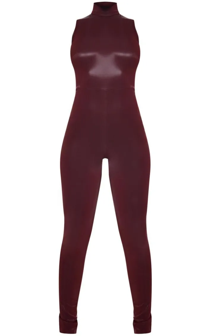 Steal all the stares this weekend with this burgundy matte vinyl high-neck jumpsuit. Brought to you in an burgundy matte vinyl material with a high neckline and simple design, it is everything you’re looking for and more. If you’re looking for a ‘fit that will gain all the compliments this weekend then you need this jumpsuit. Team with clear heels, silver accessories and a clutch bag to seal the look.