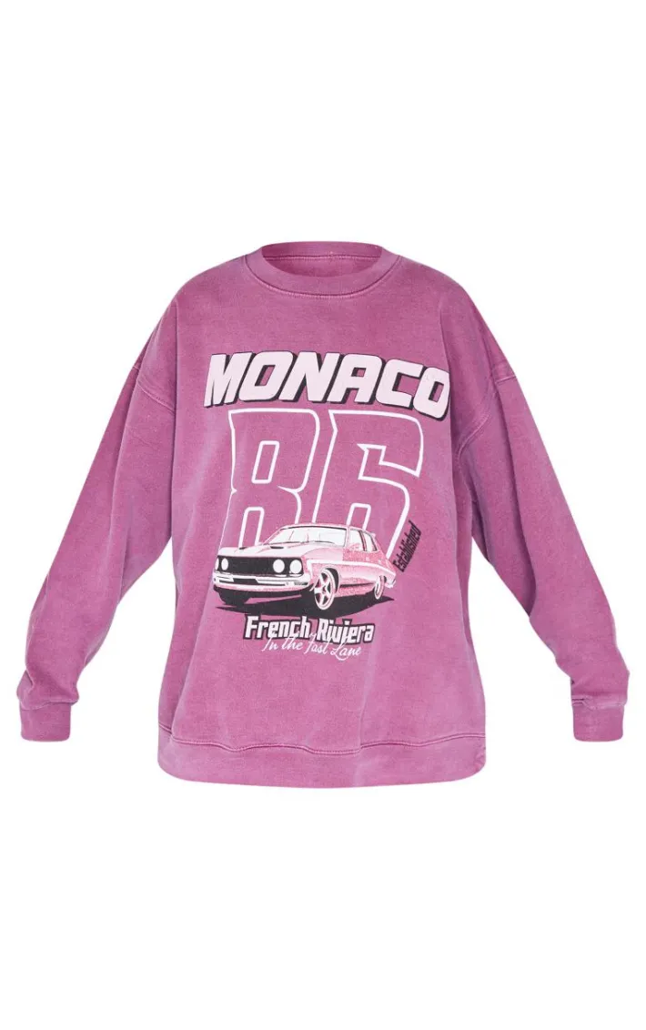 Take your off duty look to new heights with this burgundy Monaco 86 printed sweatshirt. Brought to you in a burgundy hue sweat material with a ‘Monaco 86’ printed detail, this sweatshirt is all the new you need. Style with wide leg jeans, fresh kicks and simple accessories for a look we can’t get enough of.