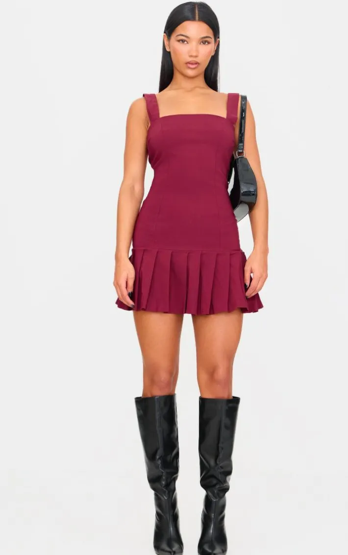 Make heads turn for all the right reasons in this burgundy pleated shift dress. Brought to you in a burgundy hue material with a pleated design and a shift style, how can you say no? Pair this shift dress with heels and accessories for a look that won’t be forgotten.