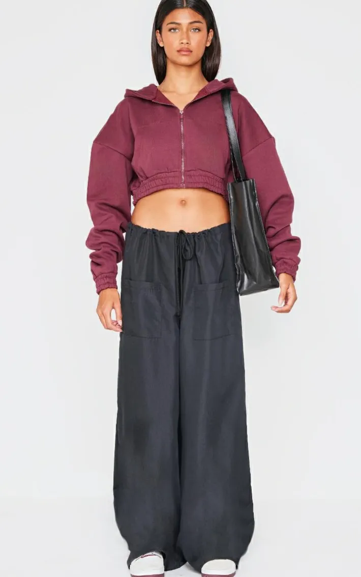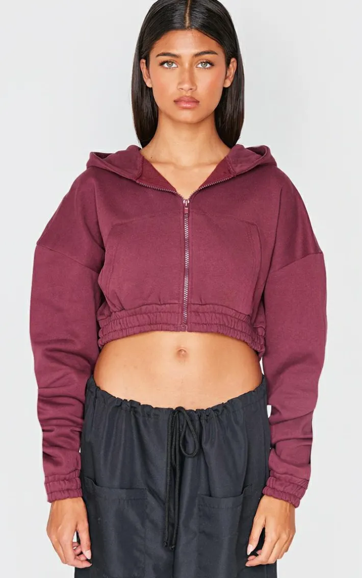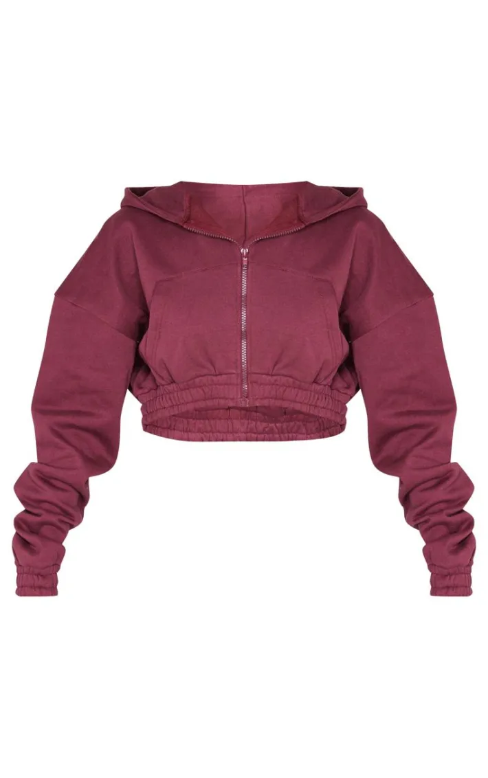 Keep your look seriously laid back with this burgundy premium cropped waistband detail sweat hoodie. Brought to you in a burgundy premium material with a cropped length and a waistband detail, what more could you want? Team this sweat hoodie with a pair of sweatpants and your fave sneakers for a look we are obsessing over.