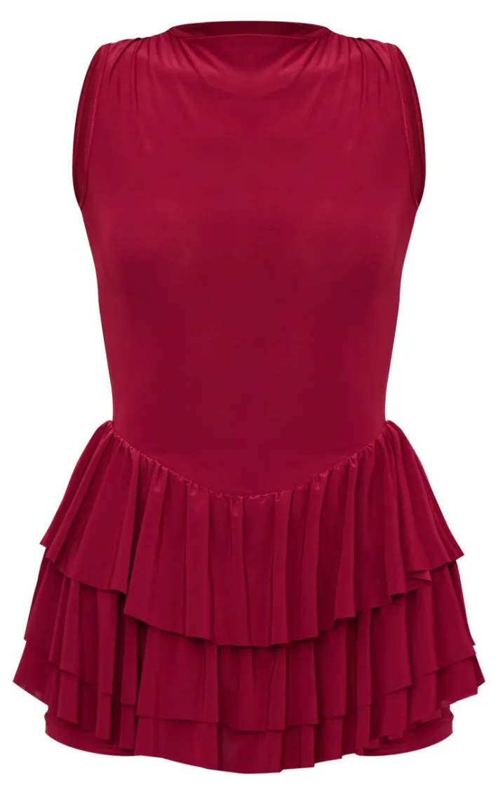 For a new you, opt for this burgundy slinky lace up back detail rara skort romper. Brought to you in a trending burgundy hue, with a luxe slinky material, lace up back detailing and a rara design, wear this whatever your weekend plans are. Style with some faux leather brown boots, a neutral leather jacket and a shoulder bag for a chic finish.