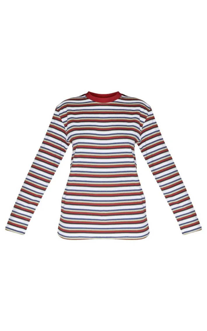 Keep it chilled with this burgundy striped contrast collar long sleeve top. Brought to you in a burgundy striped contrast collar long sleeve top. Brought to you in a burgundy material with a striped design and a contrast collar detail, what’s not to love? This long sleeve top is sure to answer all of those what to wear dilemmas. Team with your fave skirt and a pair of gold hoops, it’s a yes from us.