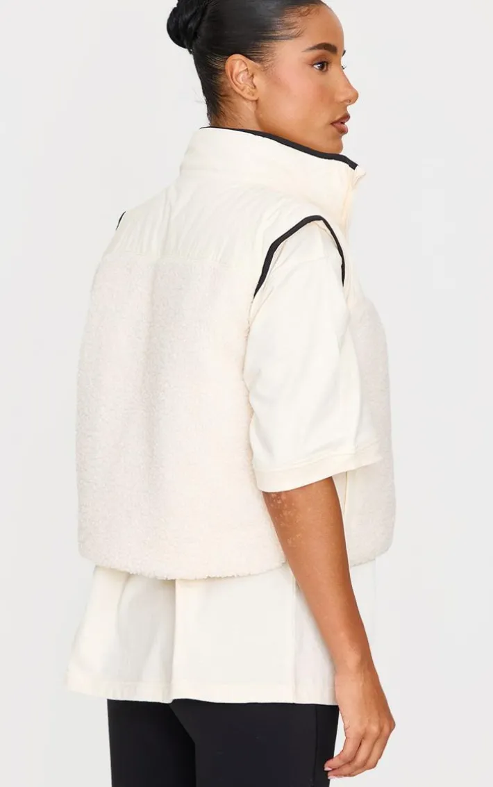 Keep your style game strong with this butter cream contrast borg crop puffer vest. Brought to you in a butter cream borg material with a contrast design and a crop length, you won’t blend in. Pair this vest with your staple accessories and leggings for a combo we are loving.