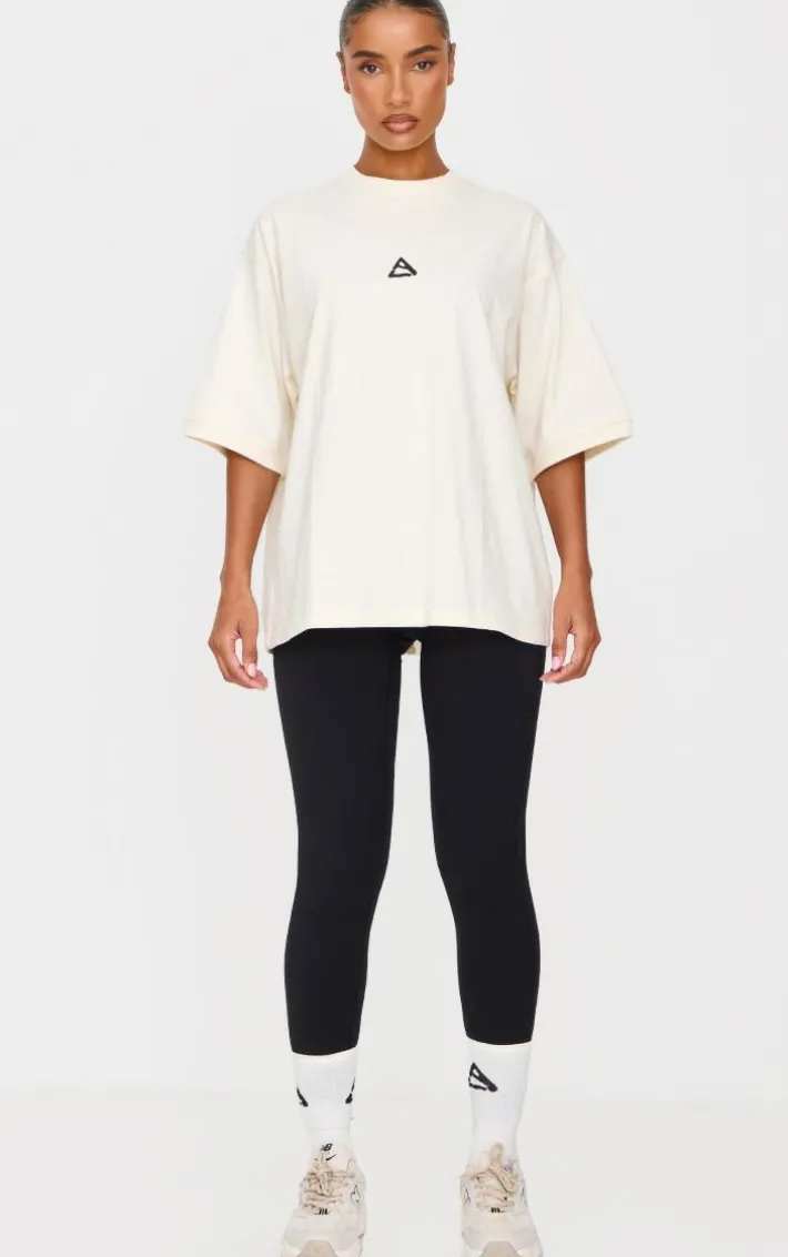 Take your athleisure look to the next level with this butter cream print oversized t-shirt. You won’t be able to resist its butter cream hue fabric, oversized t-shirt fit and printed Graphic design. Put together the ultimate combo with black leggings, sneakers and your must-have accessories.