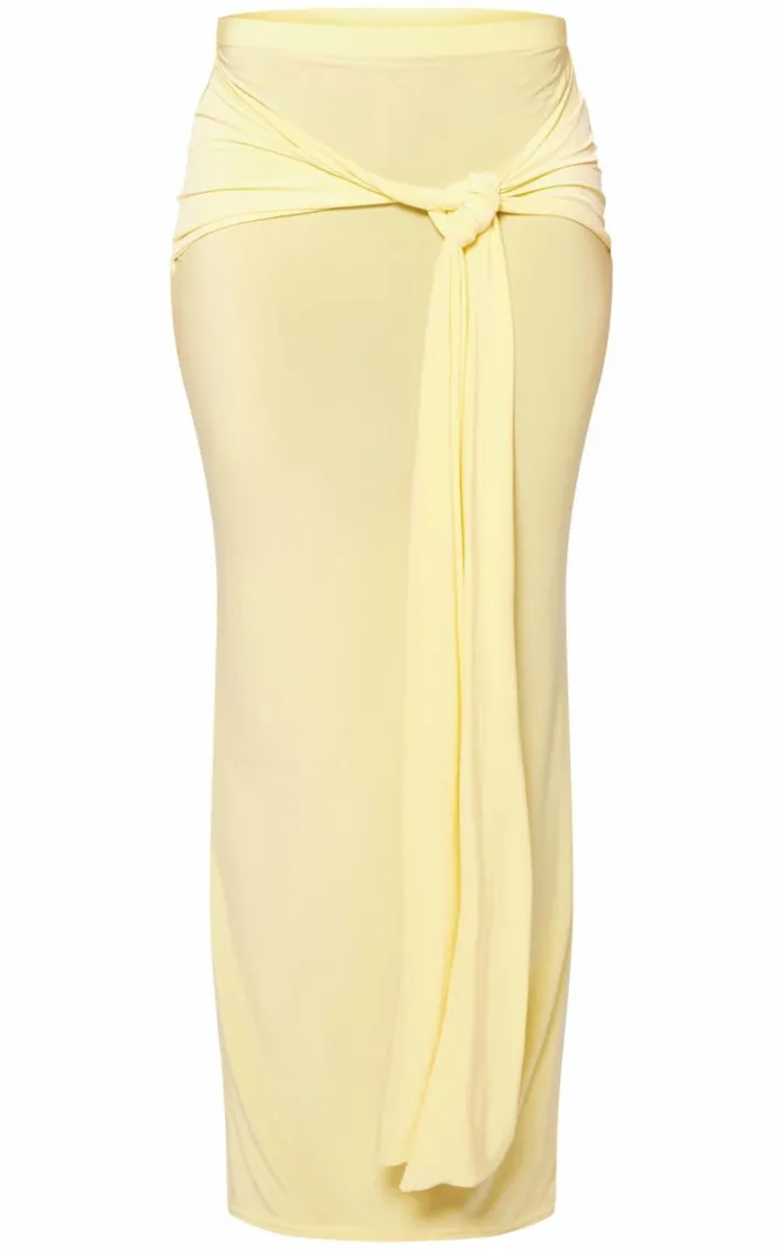 We’re totally in love with this butter cream slinky tie detail maxi skirt for your weekend plans. It is made from a butter cream slinky material with tie detail and a maxi length, how could you not be obsessed? This maxi skirt gives you endless styling potential and is bound to give your look that extra chic touch. Style seamlessly with the matching top, clear heels and gold accessories for a seriously luxe finish.