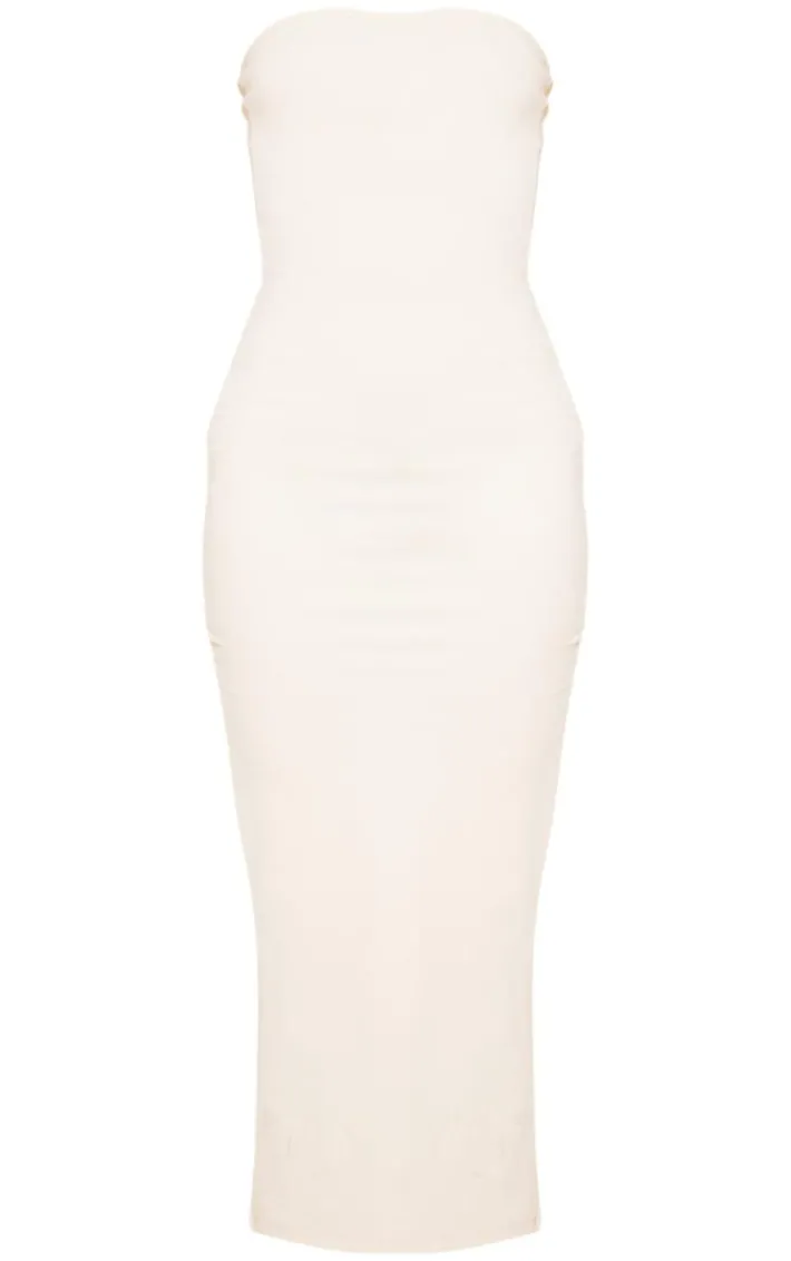 Everyday styling has never been more simple than with this butter cream snatched sculpt bandeau midaxi dress, it is the perfect versatile piece to dress up or down. This dress features a butter cream contour material with a bandeau style and a midaxi length. Pair this sculpting dress with sneakers and your fave accessories for a combo we’re crushing on.