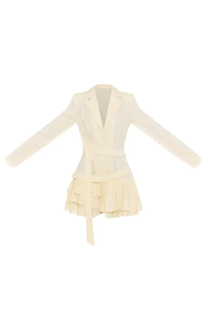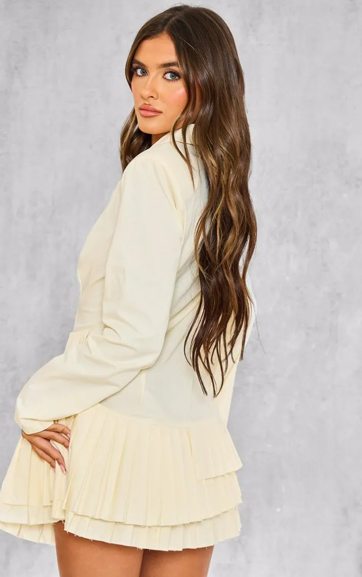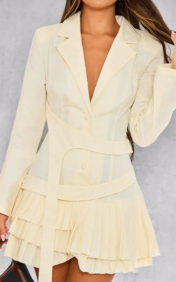 Treat yourself to this butter cream tailored woven pleated belt blazer dress. You’ll look unreal. Brought to you in a butter cream woven material with a tailored design, pleated detail and belt fastening, this blazer dress is everything you need and more. Work your styling techniques to make this dress fit any occasion by adding your fave heels and accessories. It’s official, we’re obsessed.