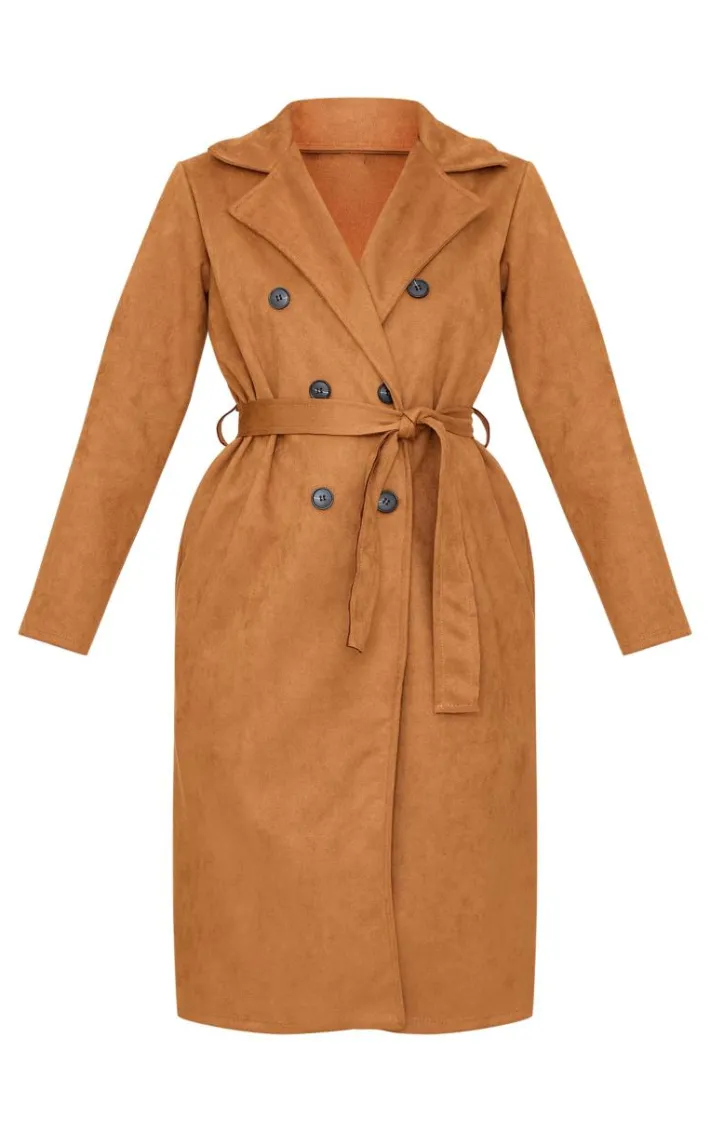 Elevate your outfit of the day with this camel faux suede trench coat. Brought to you in a camel hue faux suede material with a belted design and a trench style, we are so obsessed. Layer this trench coat over your fave wardrobe pieces for a look that won’t go unnoticed this season.