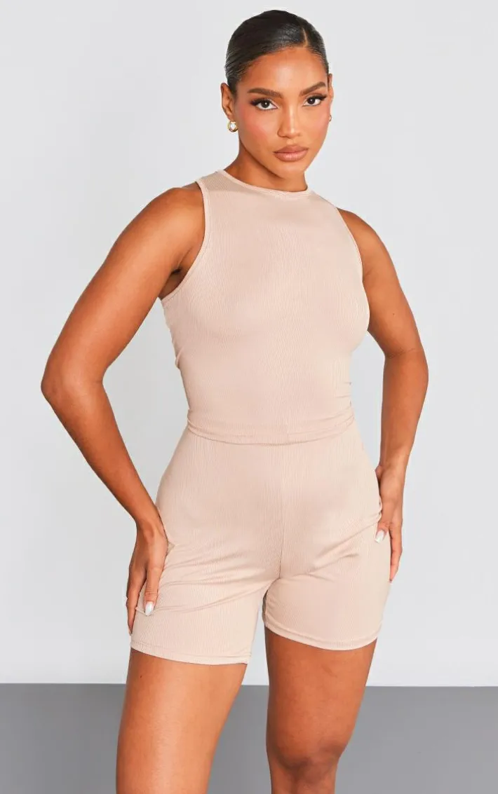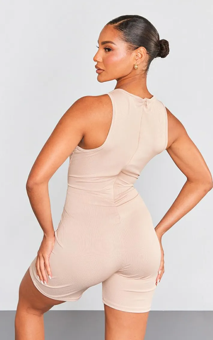 Hit refresh on your new season wardrobe essentials with this camel ribbed racer unitard, it is perfect for taking your look from day to night. With a camel hue ribbed material, a racer style and a figure-worshipping fit, this unitard just went straight to the top of your hut list. Team it with chunky sneakers and simple accessories for a cool, off-duty vibe.