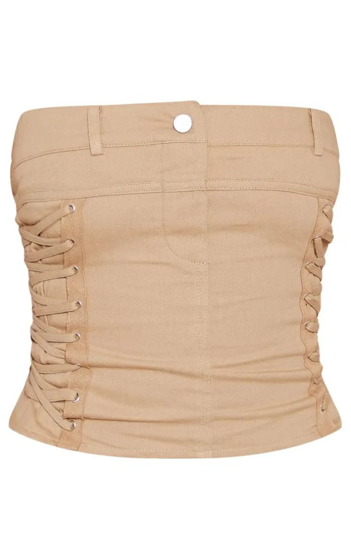 Amp up your neutral collection with this camel twill waistband detail lace up side corset. This corset is brought to you in a camel twill material with a waistband detail that will give you a flattering fit you won’t be able to resist. With a lace up side, this corset adds a touch of luxe to any look. Team with the matching mini skirt and a pair of clear heels to finish off the look we are loving.