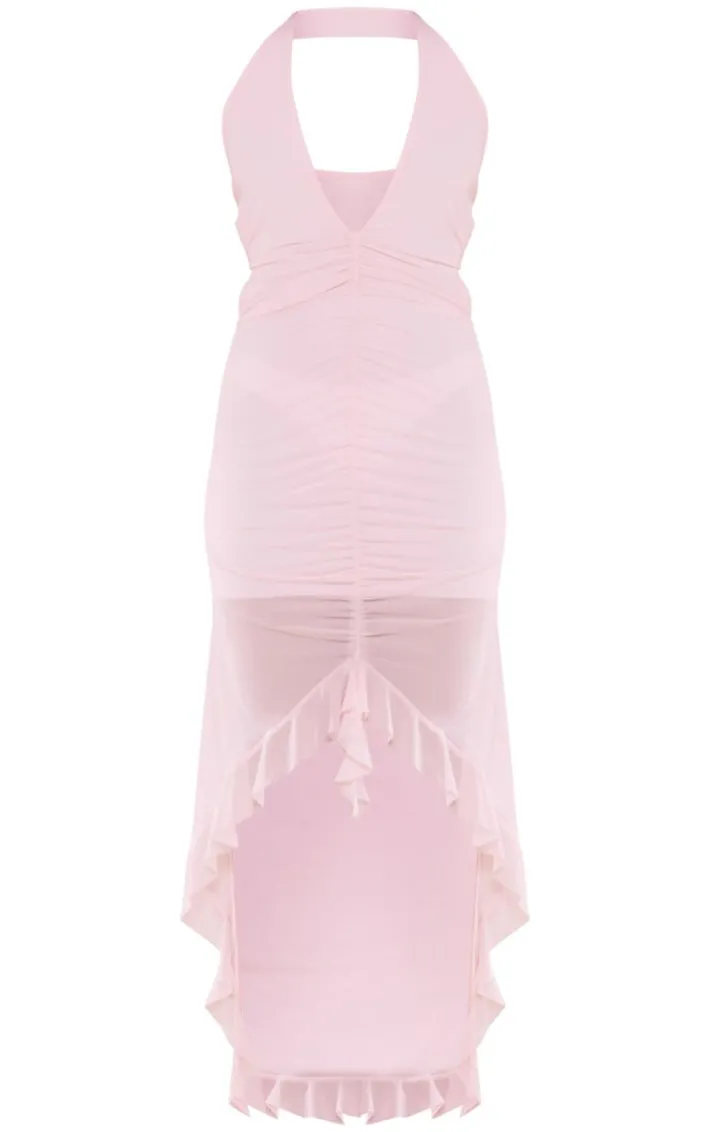 Turn heads for all the right reasons in this candy pink mesh cut out halterneck ruched midaxi dress. Brought to you in a candy pink mesh material with a cut out detail and ruched design, this halterneck midaxi dress is everything you could want and more. Style with pink heels and gold accessories for an effortlessly chic look we’re all loving.