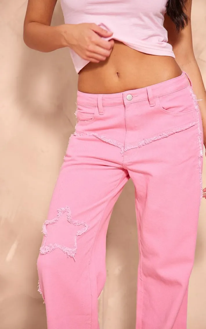 Go for all the fierce vibes this season with these statement candy pink raw hem detail star applique wide leg jeans. With a candy pink material, a star applique detail and a wide leg design, these jeans are here to help show off your confident side. Team with your fave top and minimal accessories for a look everyone will want.