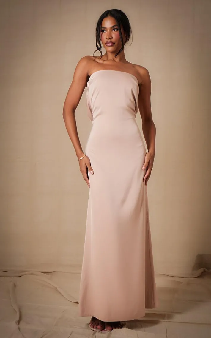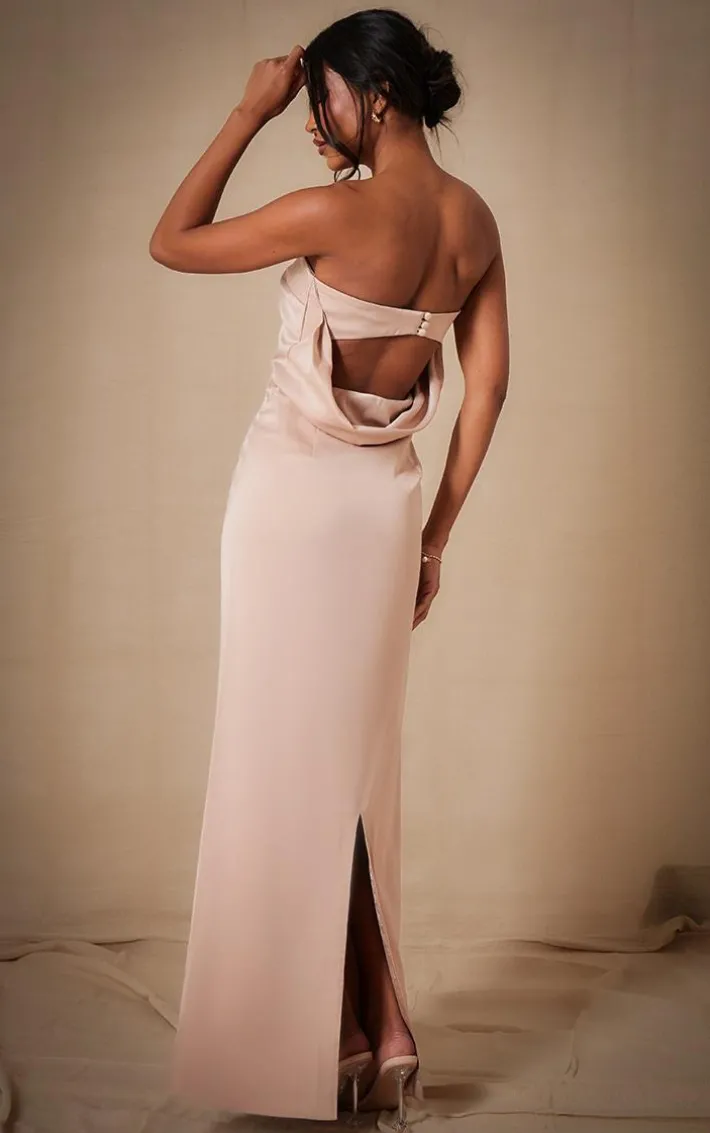 Get your glam on with this champagne bridesmaid satin bandeau maxi dress Made from a champagne satin material with a bandeau neck design and a maxi length, you’re sure to have all eyes on you. When it calls for those all important occasions, so does this unreal bridesmaid maxi dress. So what are you waiting for? Shop the look and opt for your fave heels and accessories. It’s a yes from us.