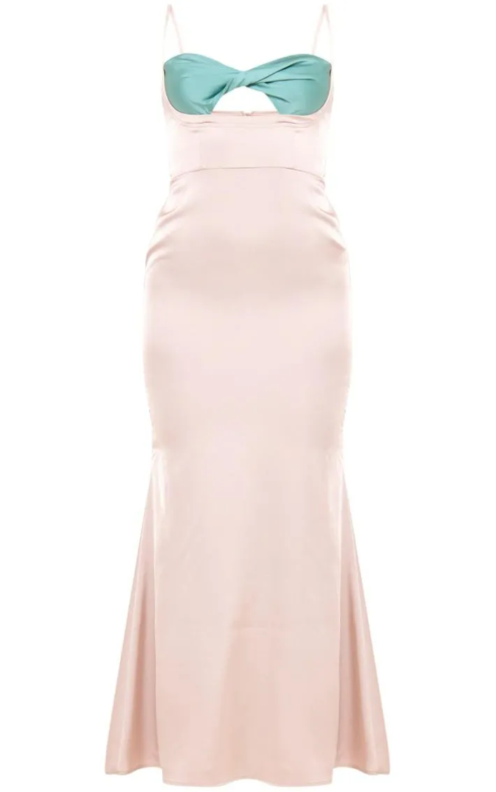 Steal the stares for all the right reasons in this champagne satin contrast twist cup midaxi dress. Brought to you in a champagne hue satin material with a contrasting design and a figure-flattering midaxi fit, how can you not fall in love? Style this satin dress with clear strpa heels and some glam accessories for an occasion look they won’t forget.