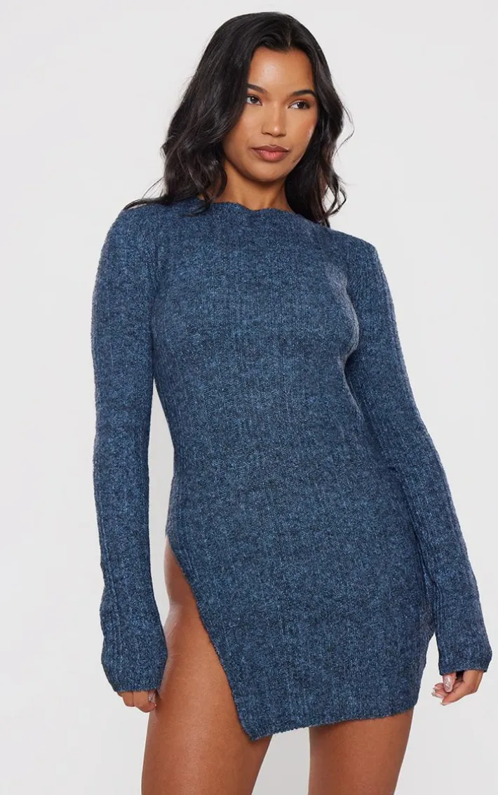 Give your everyday wardrobe the chic upgrade it deserves with this charcoal blue luxe knit open back side split mini dress. Brought to you in a charcoal blue luxe knit material with an open back design and a side split detail, this mini dress just went straight to the top of your hit list. Team with some knee high chunky boots and a shoulder bag for a look we just can’t get enough of.