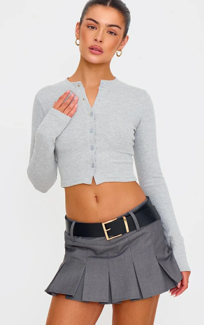 Feel feminine with this charcoal dip waist tailored woven pleated mini skort. Brought to you in a charcoal woven material with a dip waist design and a pleated detail, we are obsessed. Team with some knee high boots and a crop top for a look we are loving this season and beyond.