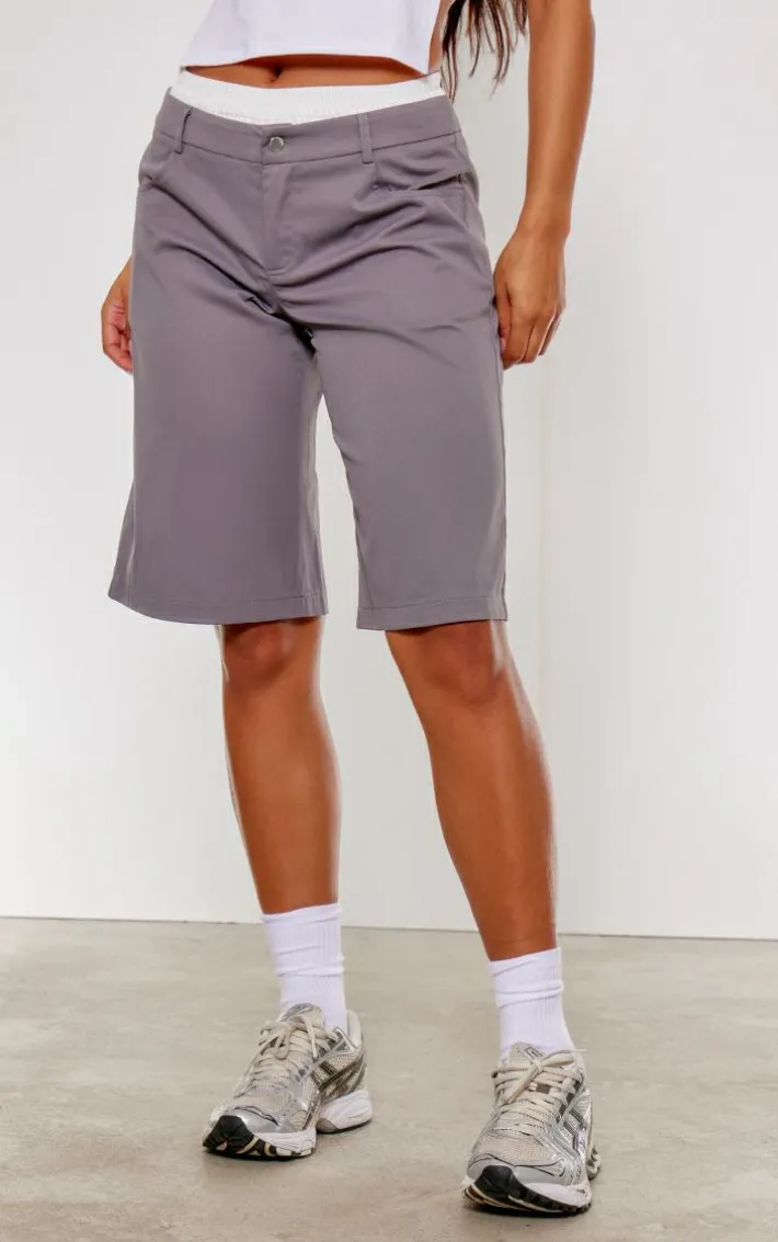 Switch up your new season style gam with these charcoal double waistband tailored oversized shorts, they’re a definite yes from us doll. Brought to you in a charcoal hue material with a double waistband design and a tailored fit, these versatile shorts can be dressed up or down. Team them with a basic top, chunky sneakers and your fave accessories for a next level look.